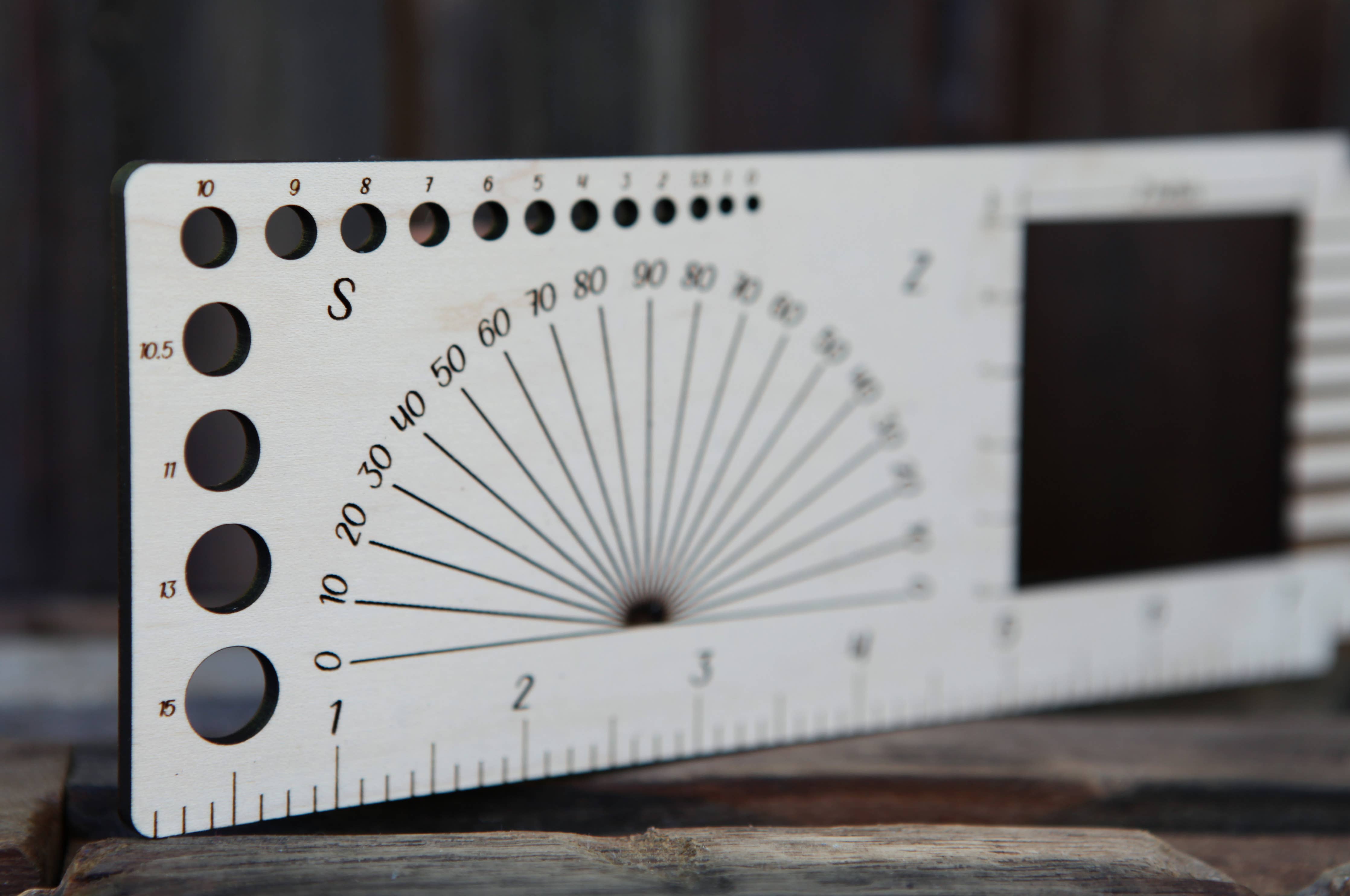 Use the swatch window to count stitches and rows per inch or centimeter. Check wraps per inch (WPI) to determine yarn weight, from lace through super bulky. Compare twist angles, or line up your yarn against the etched weight guides on the back. With inch and centimeter rulers, stitch and row gauge slots, and more, this ruler is a multitasking essential for knitters, crocheters, and spinners alike.
