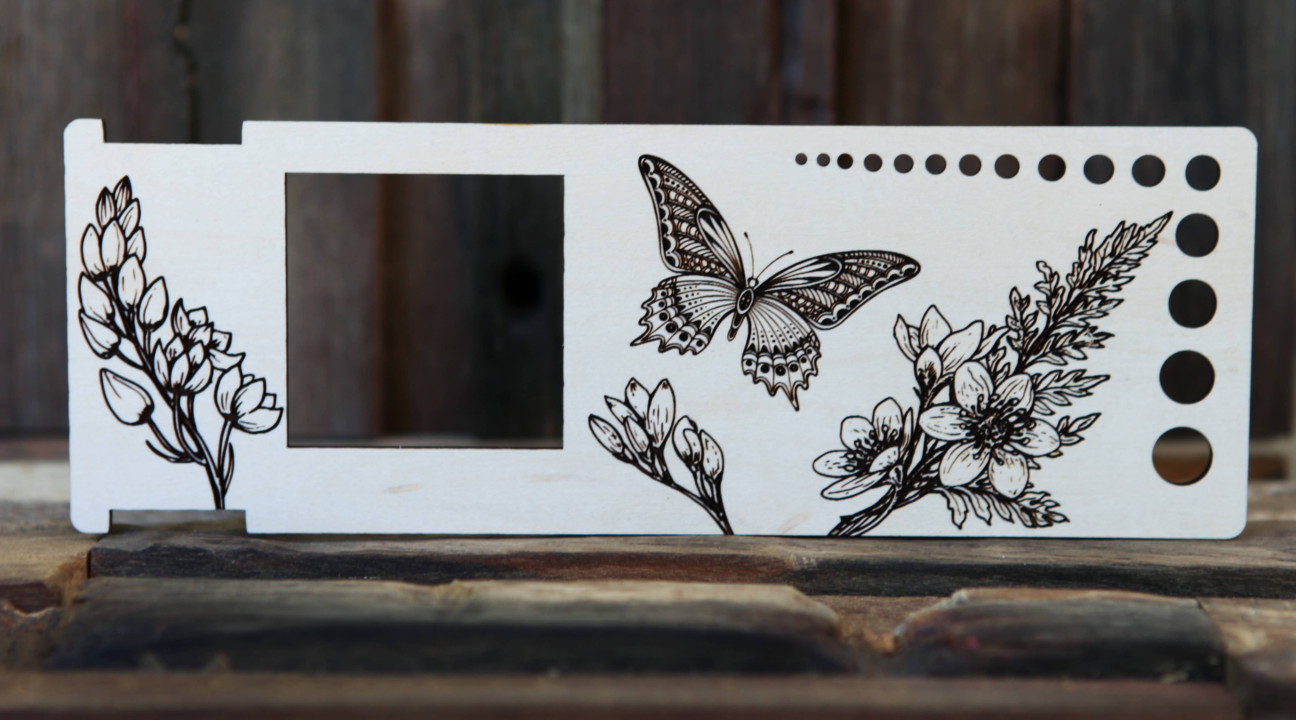 • Material: Wood (engraved with butterfly, plants, and forest flowers)