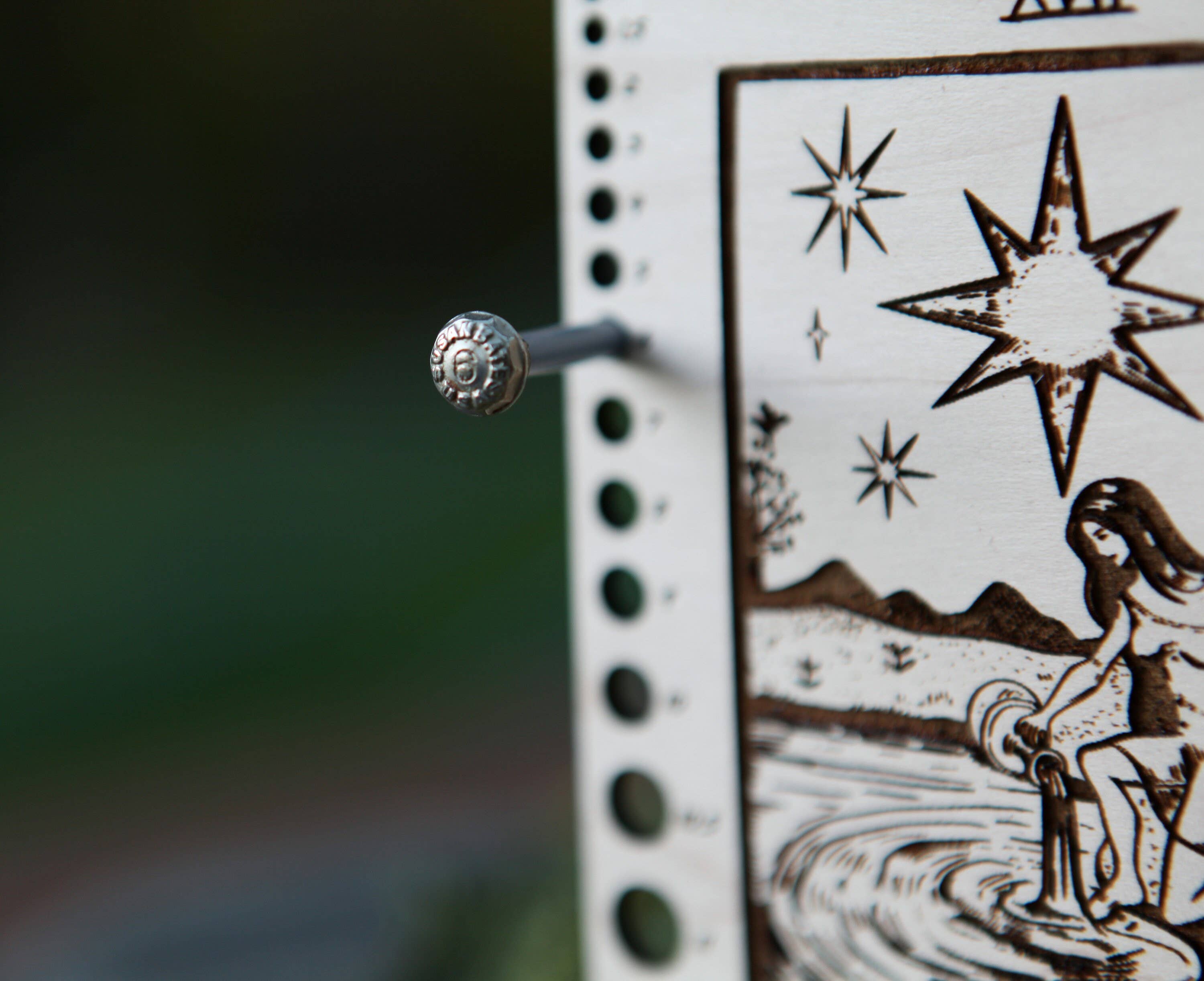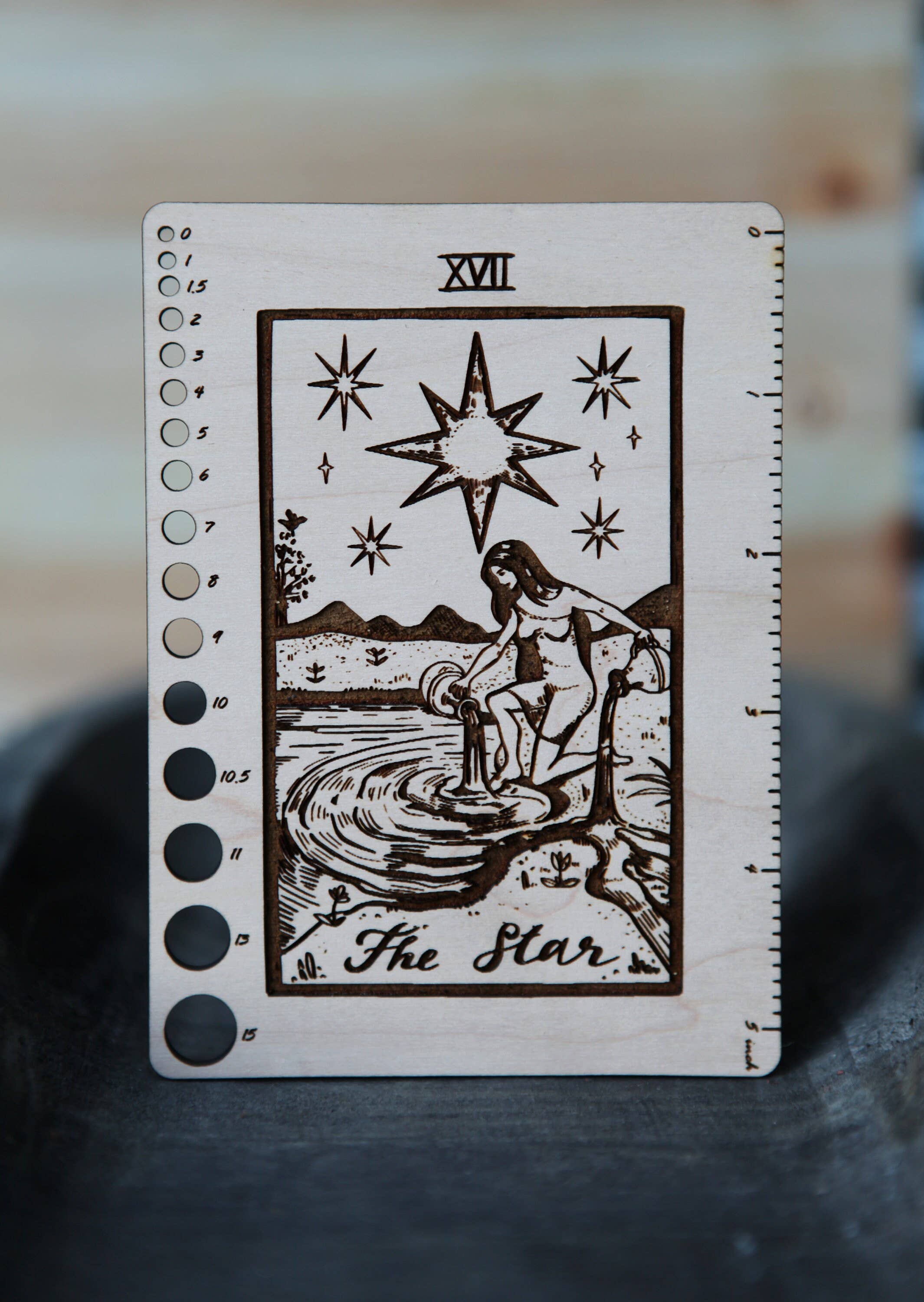 Crafted from maple wood, this rectangular tool features The Star from the Major Arcana—an image of faith, renewal, and hidden protection—etched into its surface.