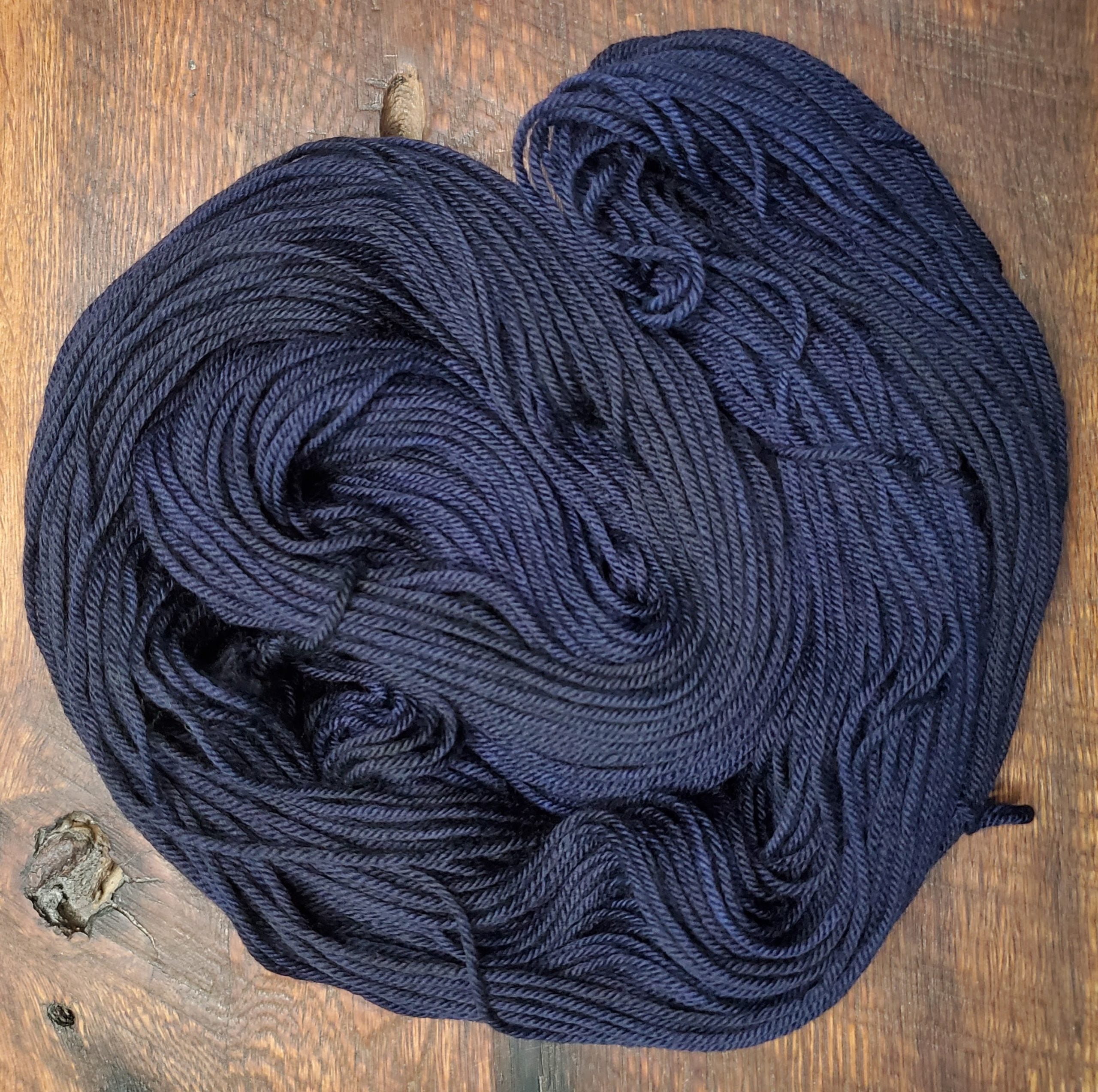 ~ Because of the dyeing process, Valkyrie & Midnight appear to be kettle-dyed, bordering on variegated. It's a gorgeous effect with some variation skein to skein.